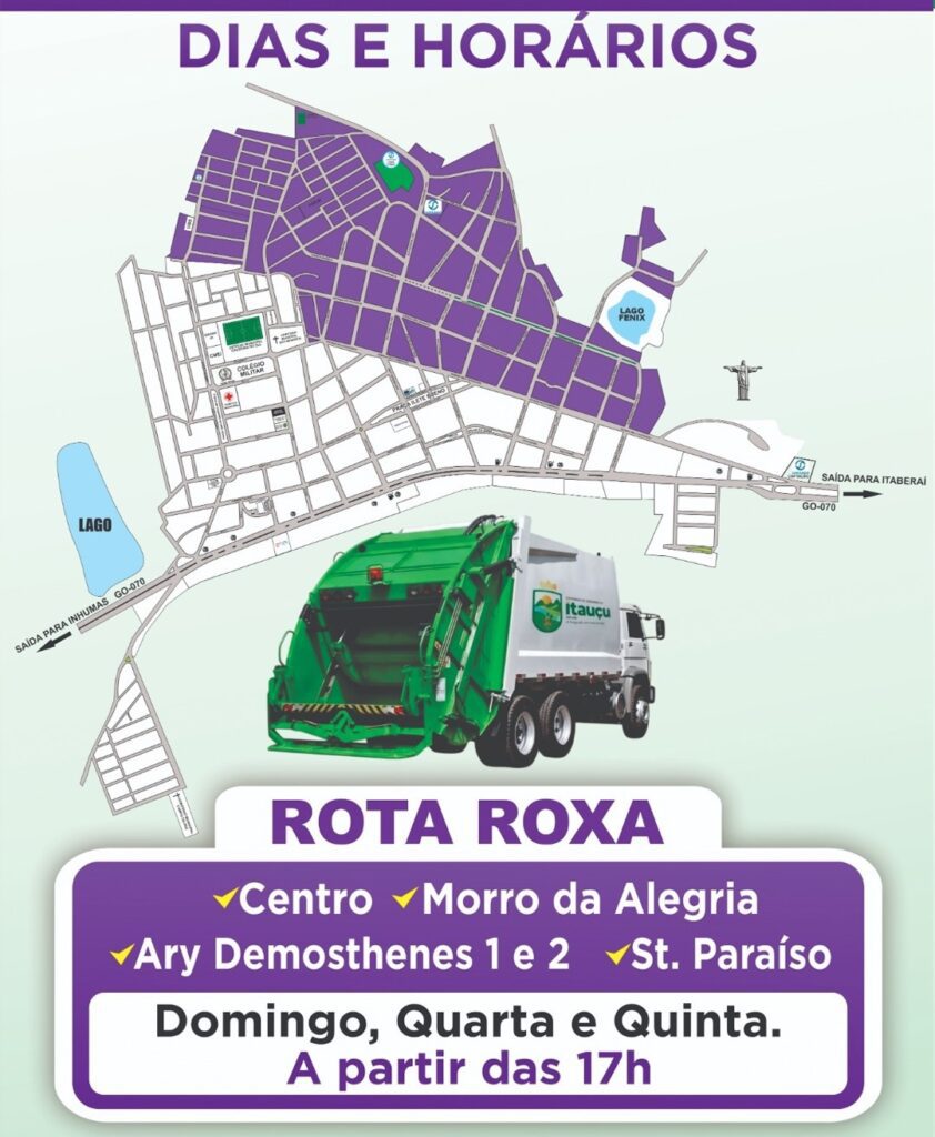 Pensando nisso, o Governo do Município de Itauçu, por meio das Secretarias de Infraestrutura e de Meio Ambiente, traz para você o MAPA DEFINITIVO DA COLETA DE LIXO! 🗺️🚛